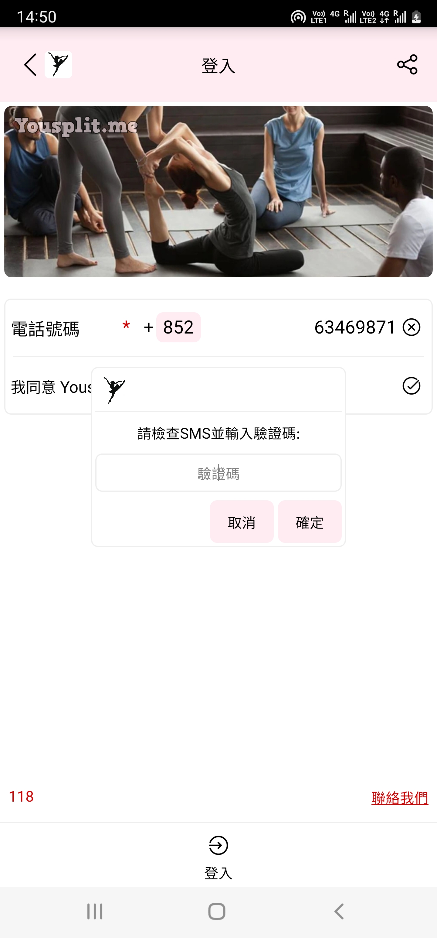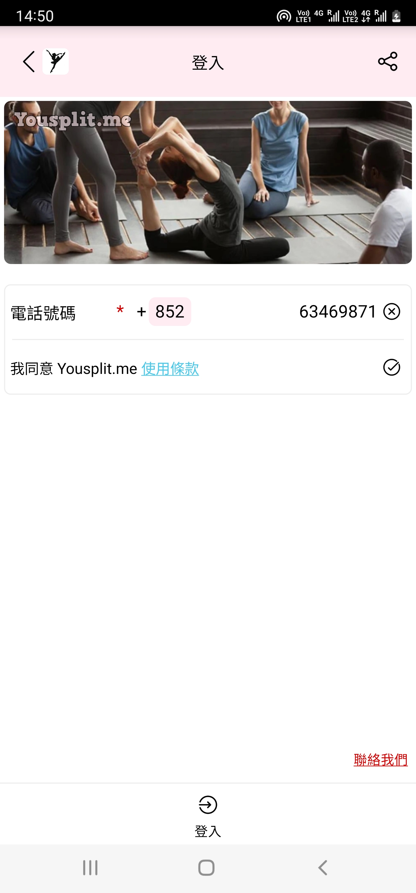2)同意Yousplit.me使用條款